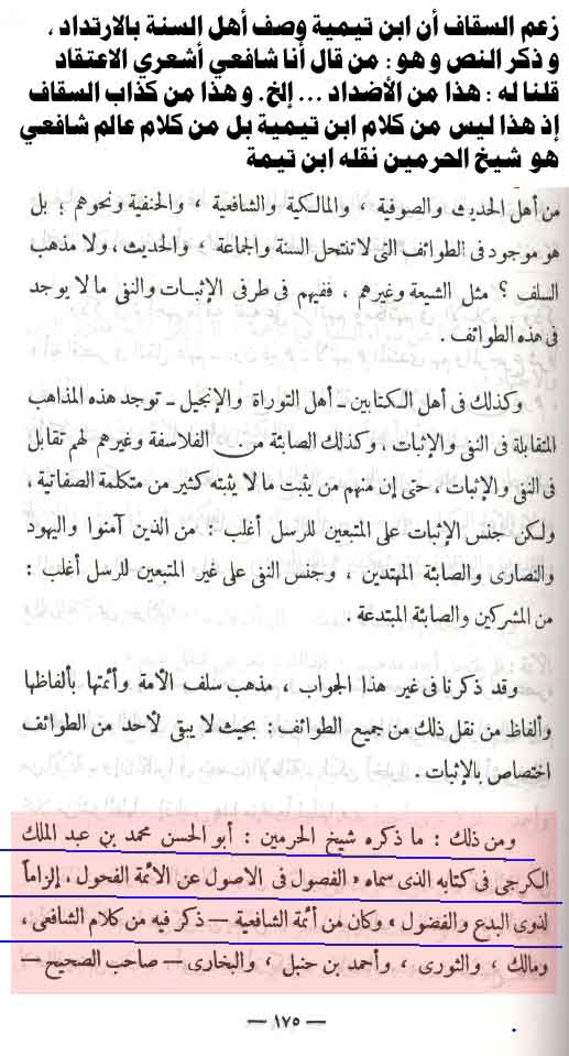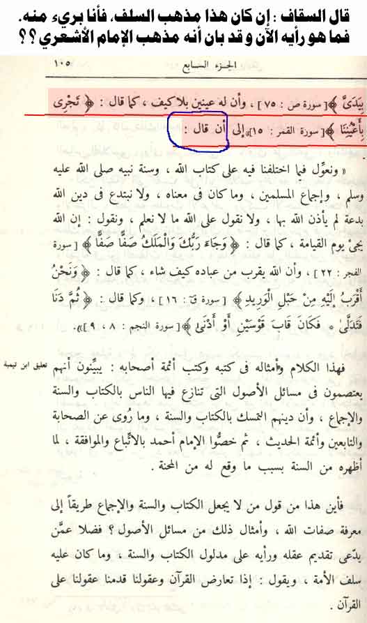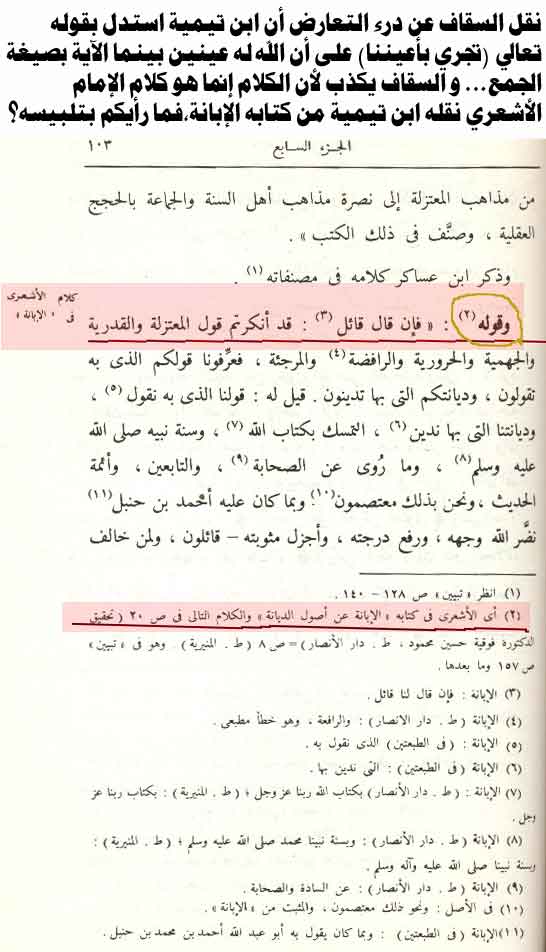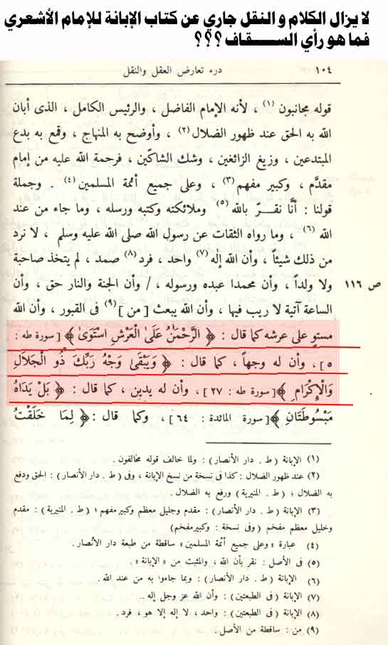 الإمام أبو الحسن الأشعري من كتابه " الإبانة " ، وقد قال حسن السقاف أنا