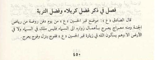 وتقديسهم لأرض كربلاء لأنه ضمت جسد الحسين فاستمدت قداستها بوجوده فيها .