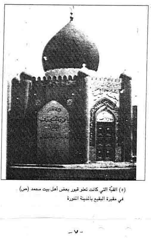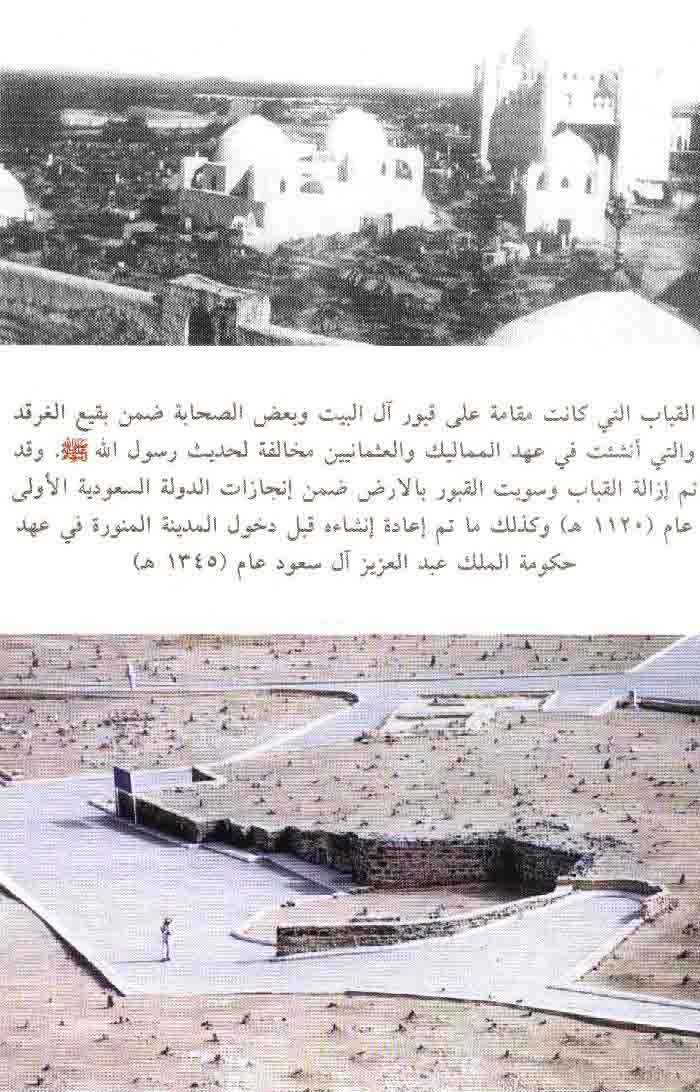 والقبابِِ ؛ يقولُ : " وهدم جميعَ القبورِ الطاهرةِ وكان من ضمن هذه