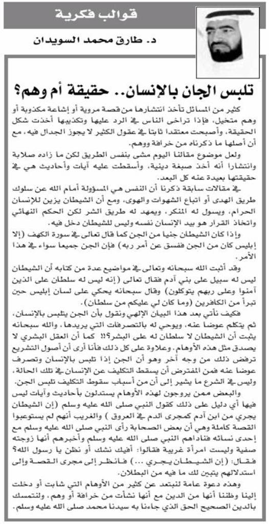 المدينةِ في عمودهِ الأسبوعي : " قوالب فكرية " وعنون له : " تلبس الجان
