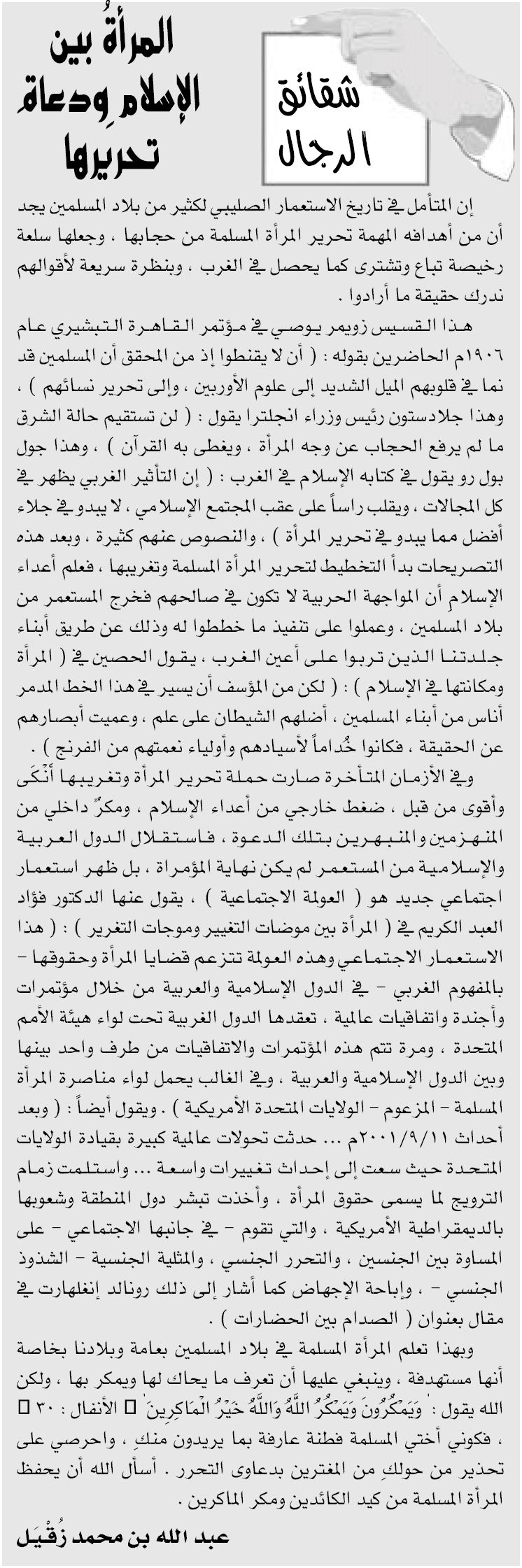 دعوةِ تغريبِ المرأة في بلادنا ، ووفق اللهُ من بقي منهم لإكمال المسيرةِ