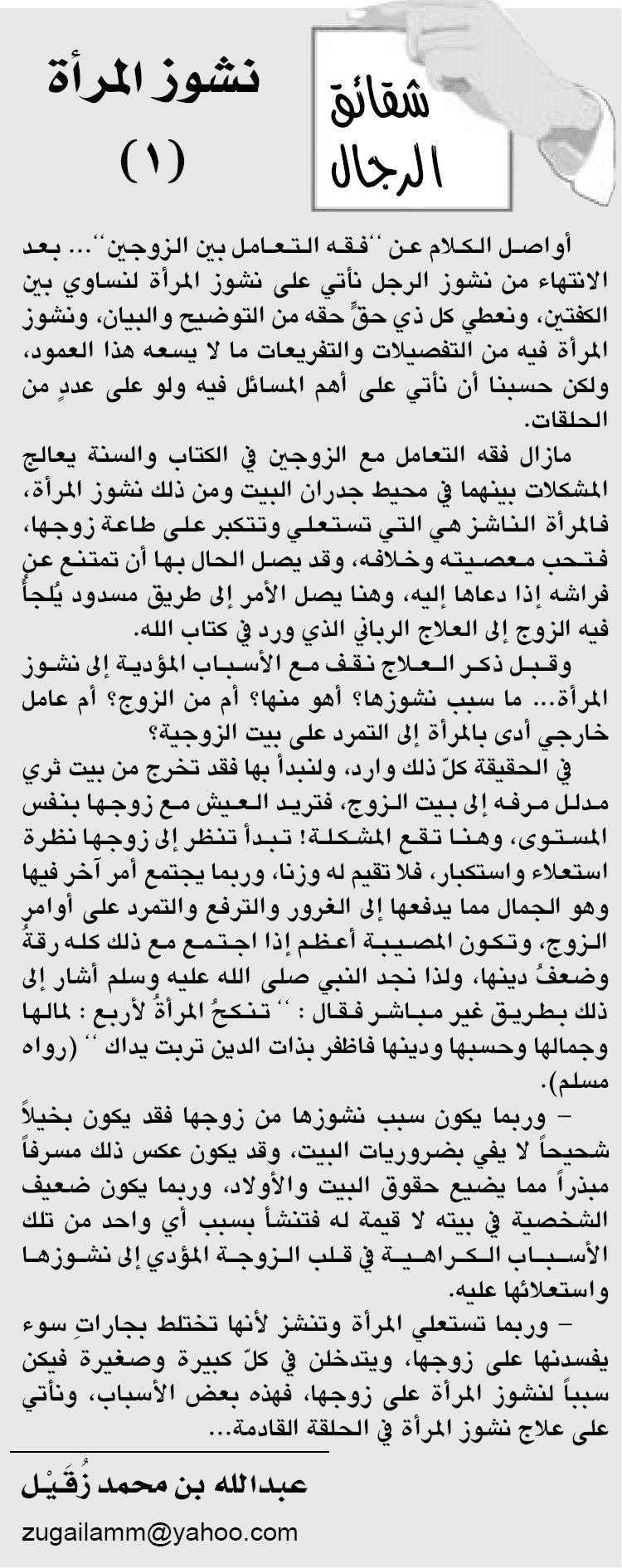 الأسباب، ونأتي على علاج نشوز المرأة في الحلقة القادمة...